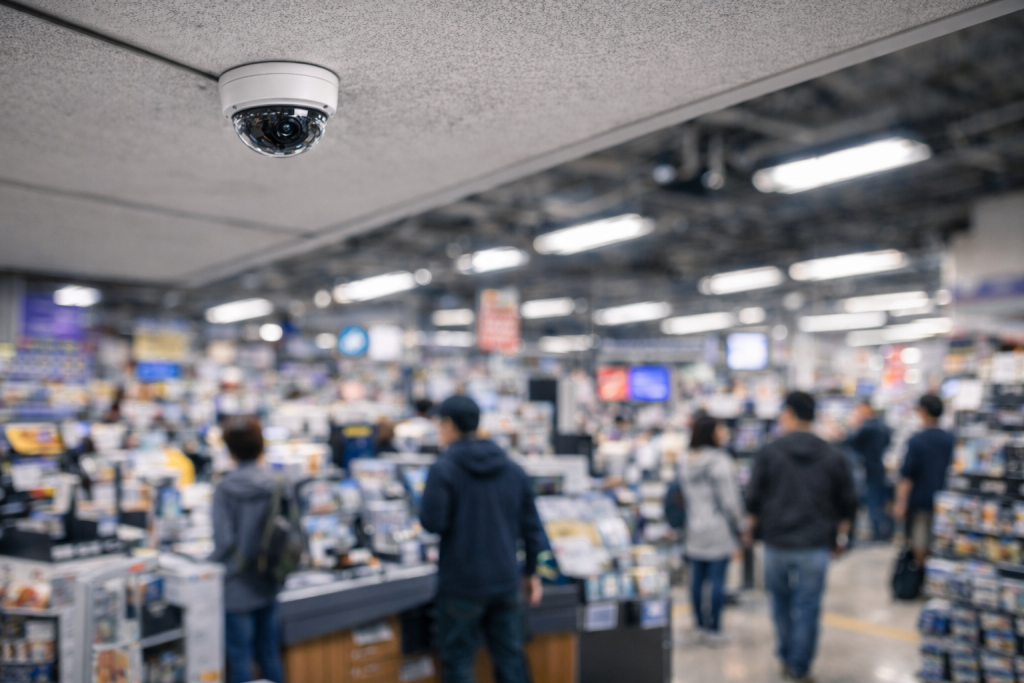 家電量販店では、人手不足や雇用コストの影響から、スタッフの目だけに頼った防犯が難しくなりつつあるため、防犯設備を活用した対策が重要になっています。